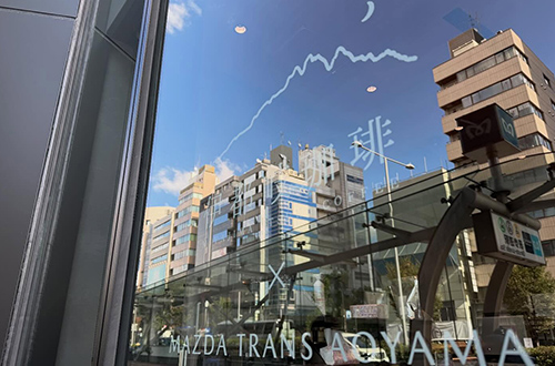 お会いしたのは、表参道のMAZDA TRANS AOYAMAカフェ。